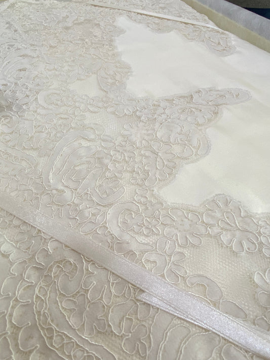 In offertaTovaglia in puro lino e pizzo in macrame’
