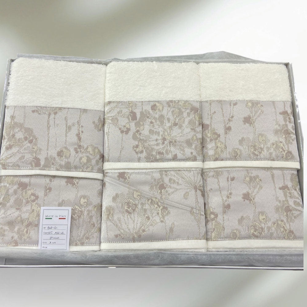 Il set asciugamani Jolie – Modello Parigi è pensato per chi desidera un bagno elegante, raffinato e curato in ogni dettaglio. Le delicate tonalità neutre e la lavorazione jacquard donano un tocco di classe senza tempo, perfetto sia per ambienti classici che moderni.