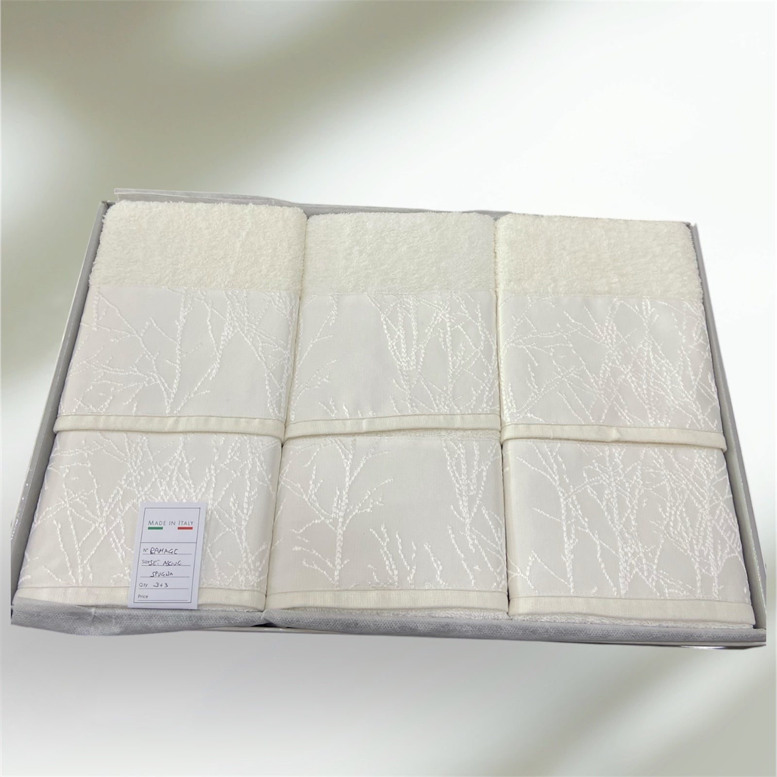 Gli asciugamani Jolie mod.Ramage sono perfetti per il tuo bagno elegante. Realizzati con materiali di alta qualità, questi asciugamani garantiscono un'asciugatura rapida e una sensazione di morbidezza sulla pelle. Aggiungi un tocco di raffinatezza al tuo bagno con gli asciugamani Jolie mod.Ramage.